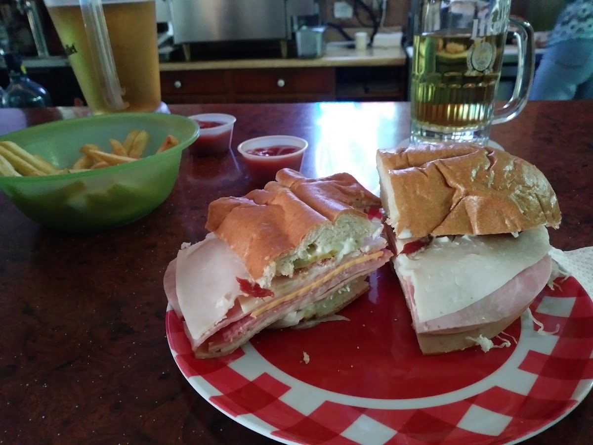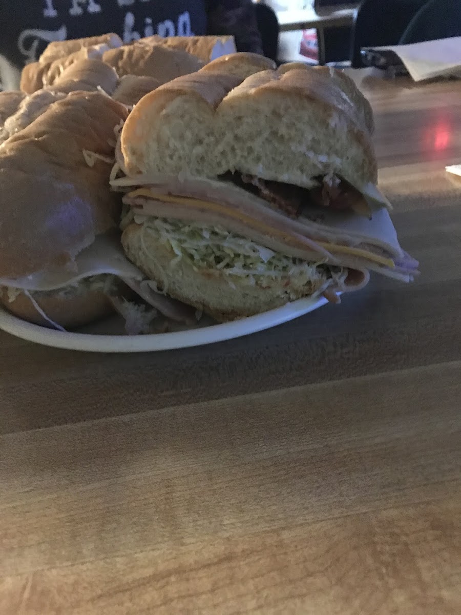 It has the best dagwood sub I've ever had. Loaded with meat and bacon light on vegetables and the bread is excellent. My grandson had a cheeseburger sub, and the burger was the thickest I have ever seen and was hand patted out. Just one warning, though: the atmosphere is a bar with music playing and people shooting pool and playing darts. Not recommended for families with small ones. Staff was extremely nice as we had 9 people at our party and they had to put tables together for us. One gentleman tending bar and one woman making all the food. If you don't like bars atmosphere then order it to go as I don't think you will regret it.